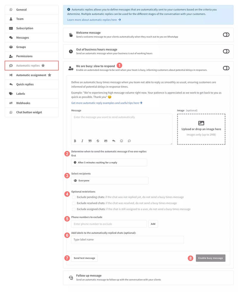 Additionally, unlike WhatsApp Business, with Wassenger you can also conveniently include images in your automatic replies.