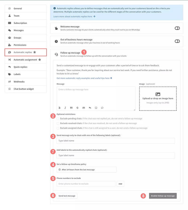 Important! Follow-up messages are only available in Business and Enterprise plans. Find more information here.