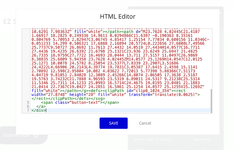 After clicking the page, the HTML element will show up, and we will click on ‘HTML editor’