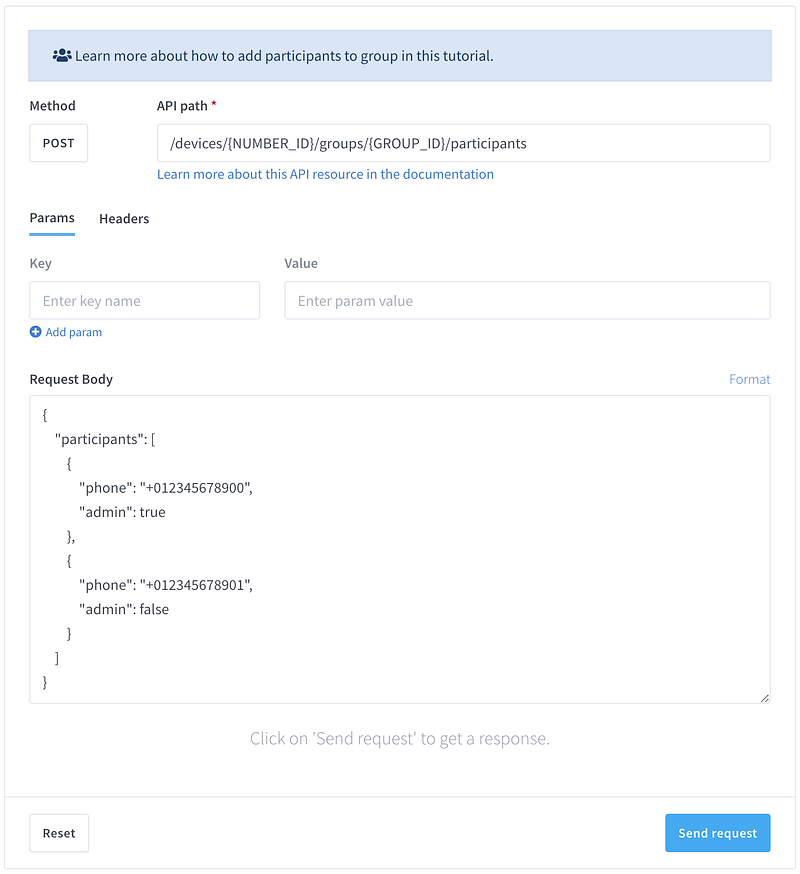 .body("{\"participants\":[{\"phone\":\"+12345678902\", \"admin\":true}, {\"phone\":\"+12345678903\", \"admin\":false}]}")