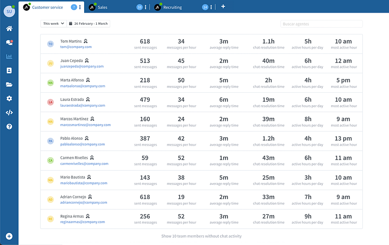 📊 Monitor chat performance — Get insights into response times and agent activity.