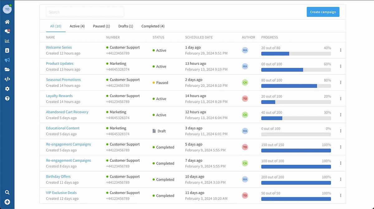 Manage all your campaigns and message delivery progress from a single dashboard.