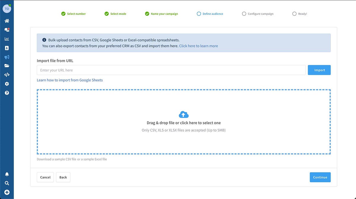 Easily import contacts to the campaign from Excel / CSV / Google Sheets