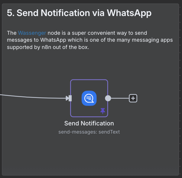 Add a Wassenger node to deliver this information directly to your WhatsApp. With Wassenger’s reliable WhatsApp API, you’ll receive these insights instantly, with no need for complex WhatsApp Business Account setup or approval processes.