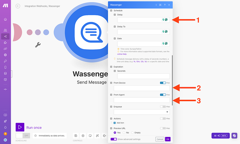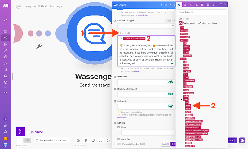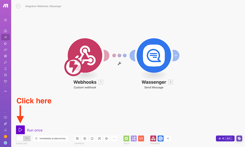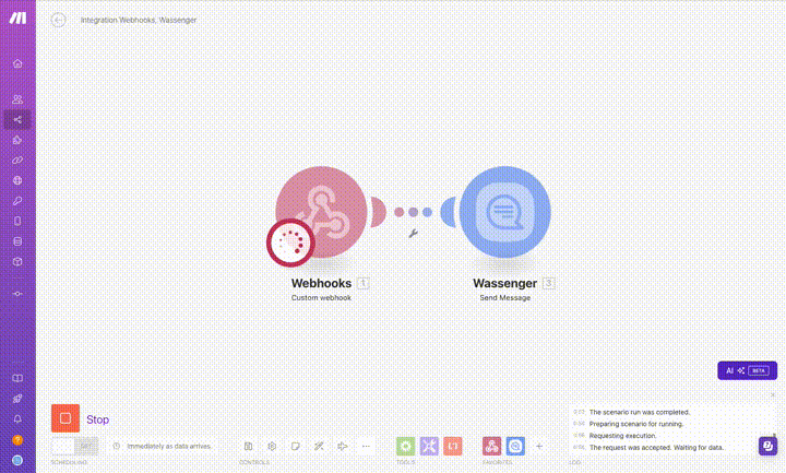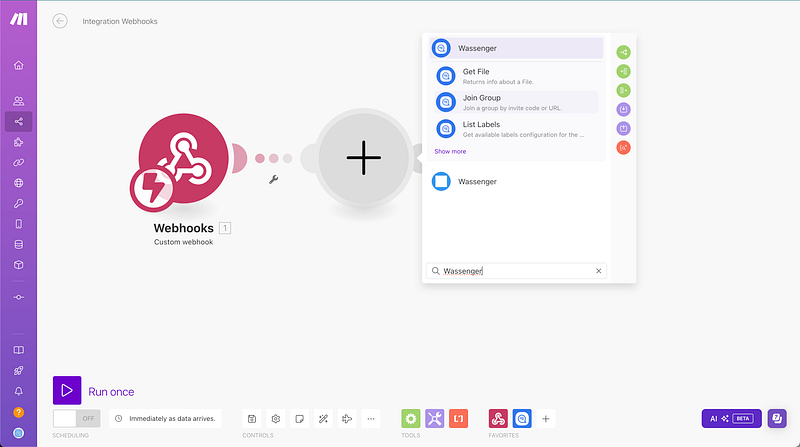 Step 4: Create a message trigger from Make to Wassenger using the webhook we just created