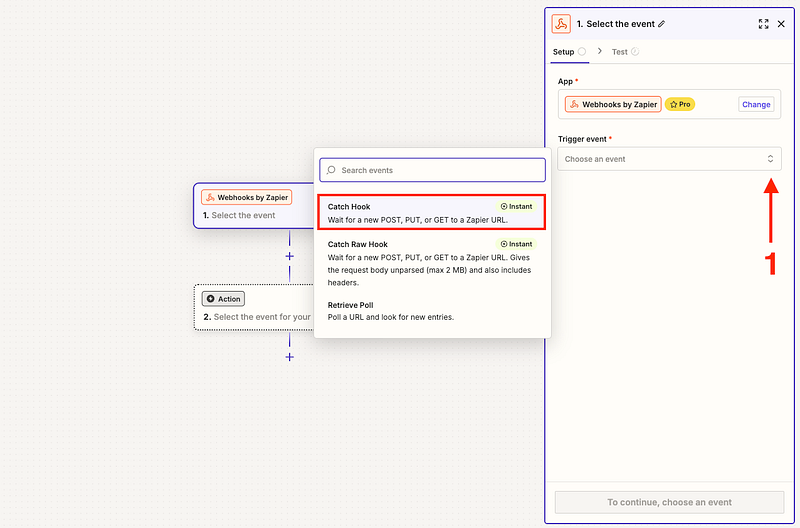 The next step is filling in the required information for your new webhook that we will later connect to Zapier.
