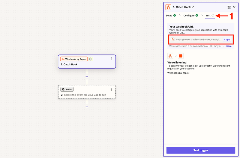 We will return to our Zap scenario to check if the connection succeeded and click on ‘Test trigger’: