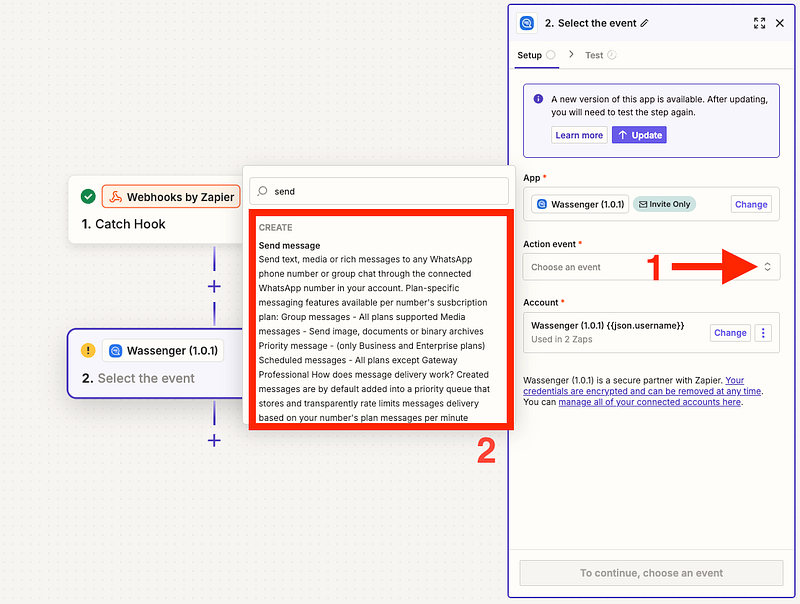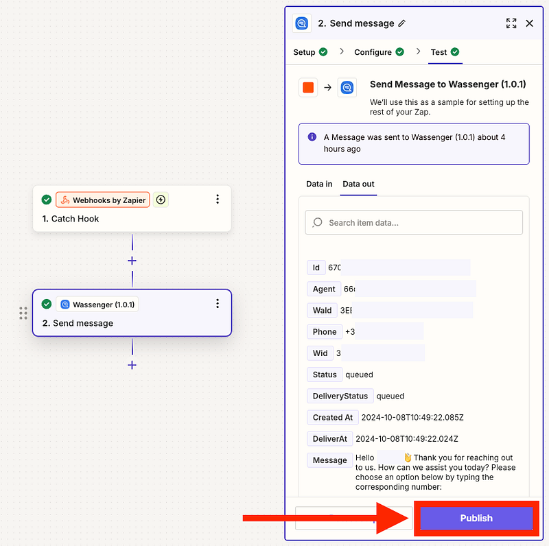 Step 4: Create a message trigger from Zapier to Wassenger using the webhook we just created