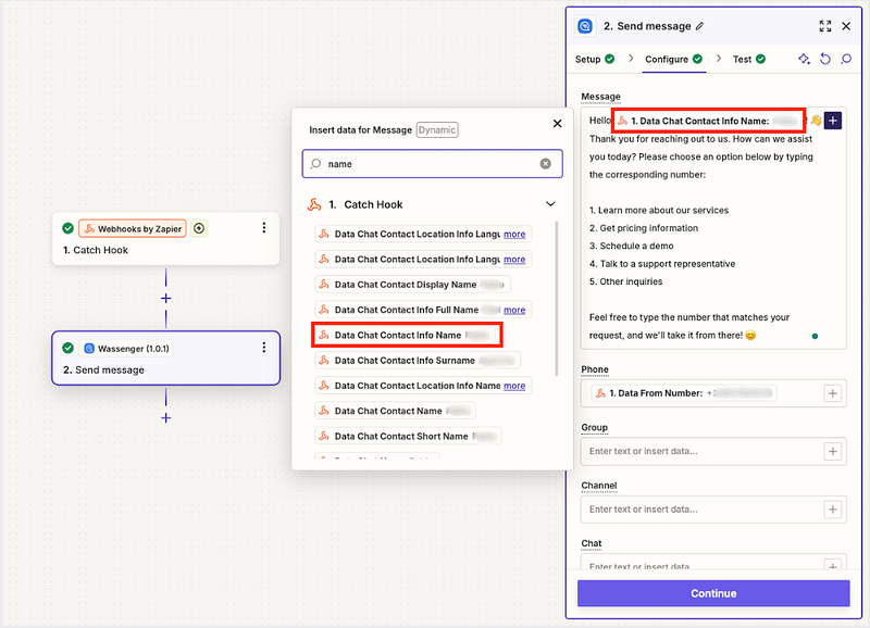Step 5: Create the message response based on the given webhooks’ Wassenger data