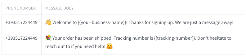 '👋 Welcome to {{your-business-name}}! Thanks for signing up.We are just a message away!' +
