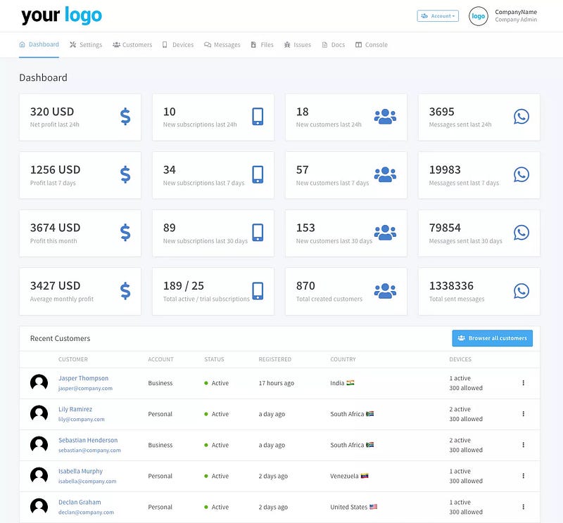 Message and team Analytics. your customers will be able to measure their team’s productivity and gain insights into their customers’ engagement on WhatsApp.