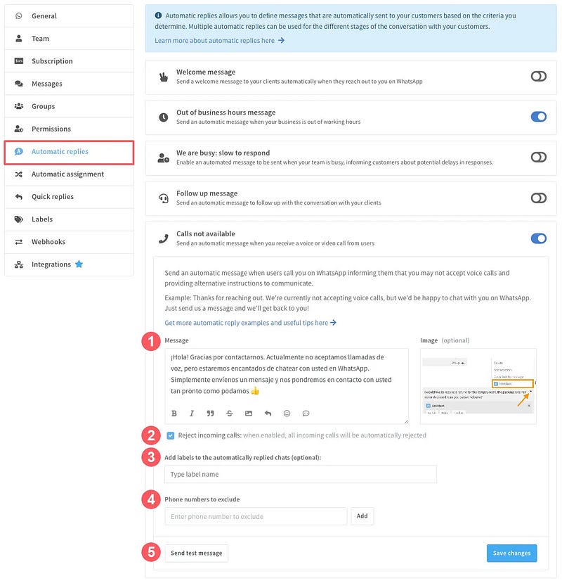 Automatic replies are a useful Wassenger tool that allows you to respond automatically to customers contacting your WhatsApp number in different scenarios. Today we’ll show you how to configure an automatic call rejection and reply message when you receive a call from customers on WhatsApp.