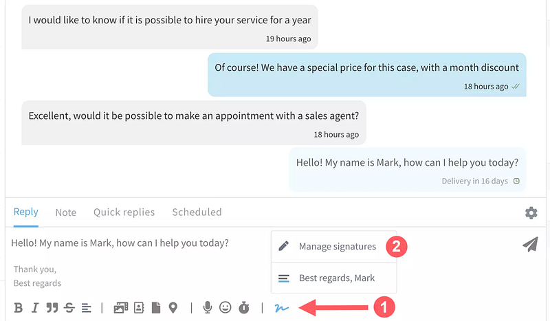 💡 Create Personalized Interactions: Make sure your customers always know who they’re speaking to. Signatures add a personal touch, whether it’s an agent’s name, a closing phrase, or business details.