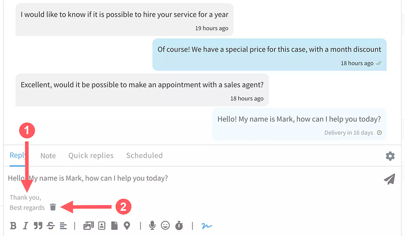 🔧 Pro Tip: Even after setting up a default signature, you can still edit or remove it directly from the chat text box before sending a message! 😉