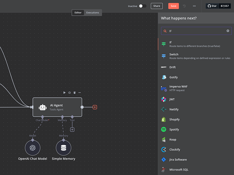 We’ll now add the AI Agent module that will assist us in analysing all incoming messages and creating outgoing responses