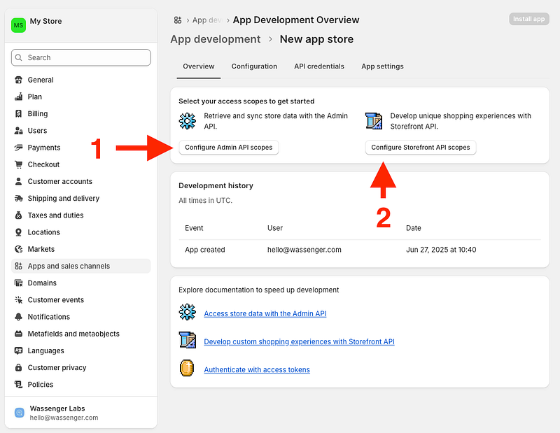 ⚠️ Warning: Shopify only shows these tokens once. If you lose them, you’ll have to create a new application.