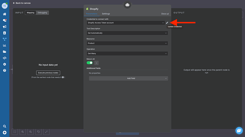 💡 Key point: The Product ID field must use an expression that takes the exact ID obtained from the “Get Products” node.