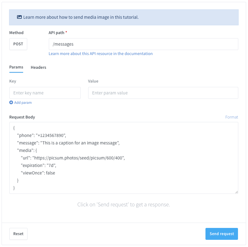json={"phone": "+1234567890", "media": {"url": "https://picsum.photos/600/400"}},