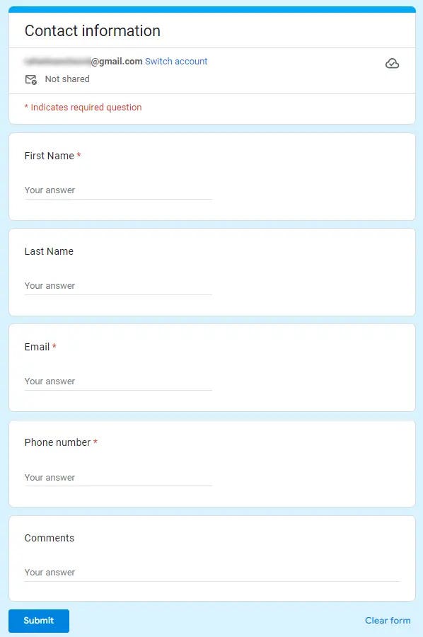 We’re now going to test our form by filling it in and hitting submit. This action will trigger the ‘Watch Responses’ event in the Google Form module we’ve integrated via Integromat. The information submitted in the form will then be accessible for us to create a new contact in the Wassenger module we just added. Let’s examine how the data is received