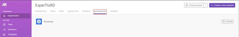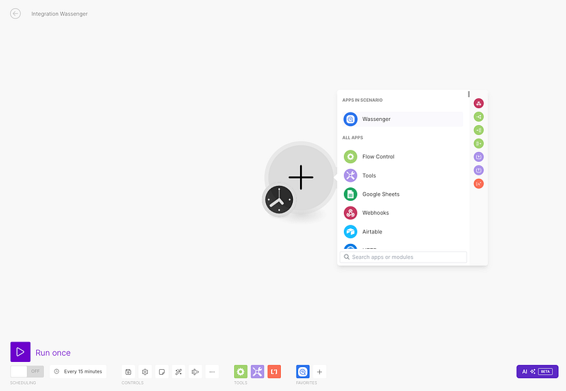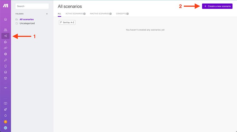 Step 2: Create a new scenario in Make to communicate with Wassenger