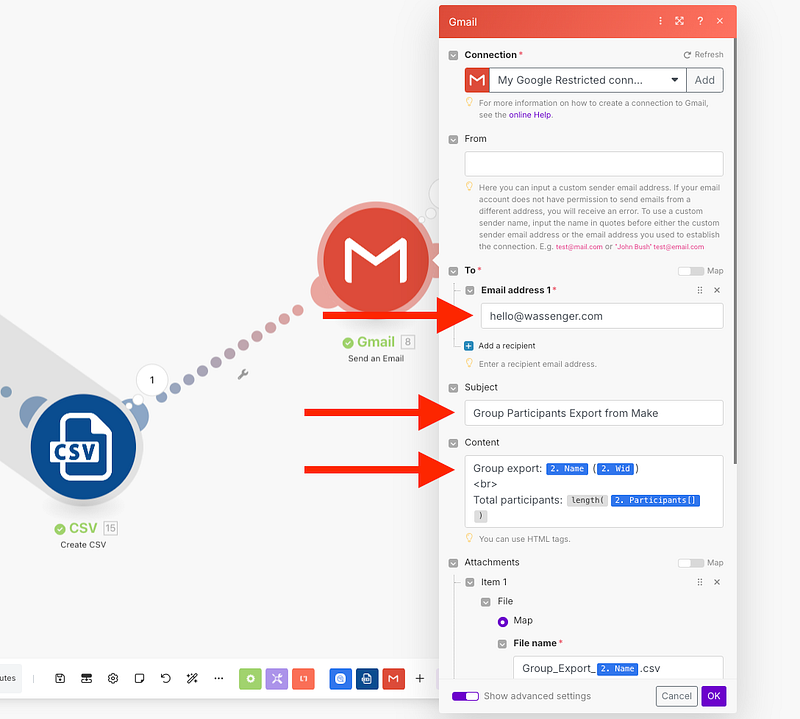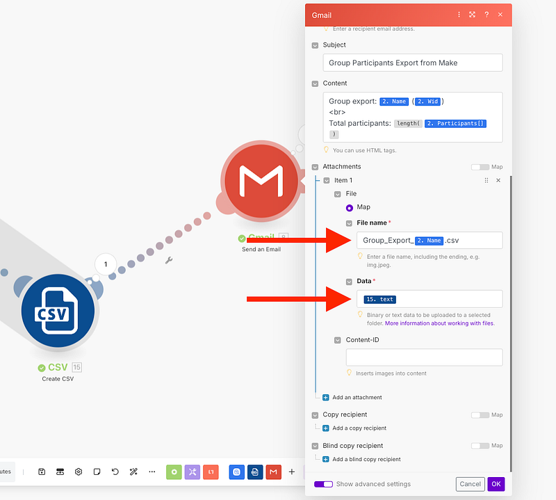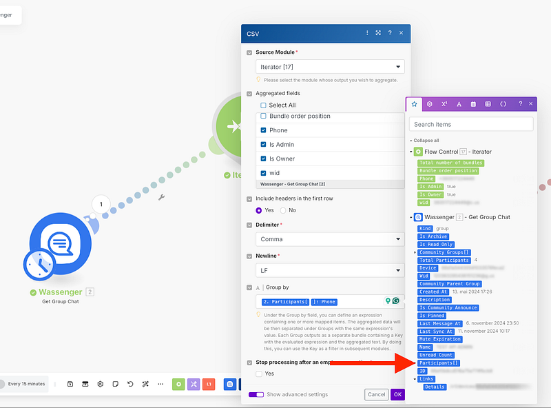 Once we selected the participants, we will add a new module to create a CSV