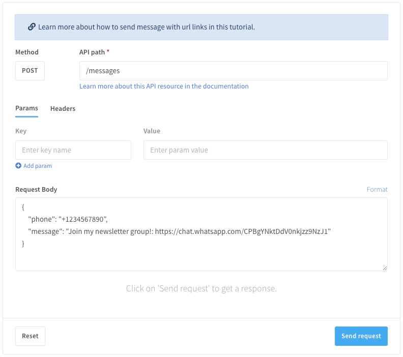 We will use the following API endpoints to send messages to a group: