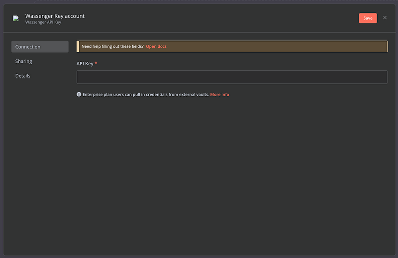 6. You can now use Wassenger’s node in your workflows: if you can’t see it, restart the n8n instance