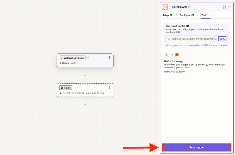 We will return to our Zap scenario to check if the connection succeeded and click on ‘Test trigger’: