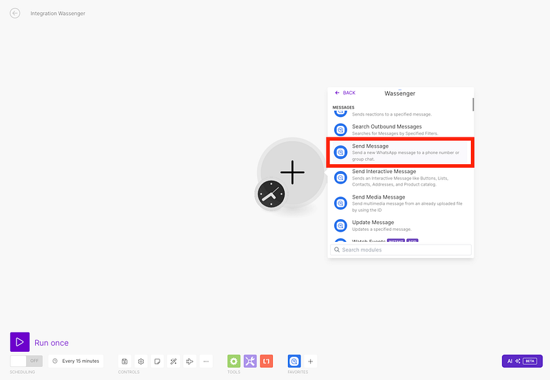 Step 2: Create a new scenario in Make to communicate with Wassenger