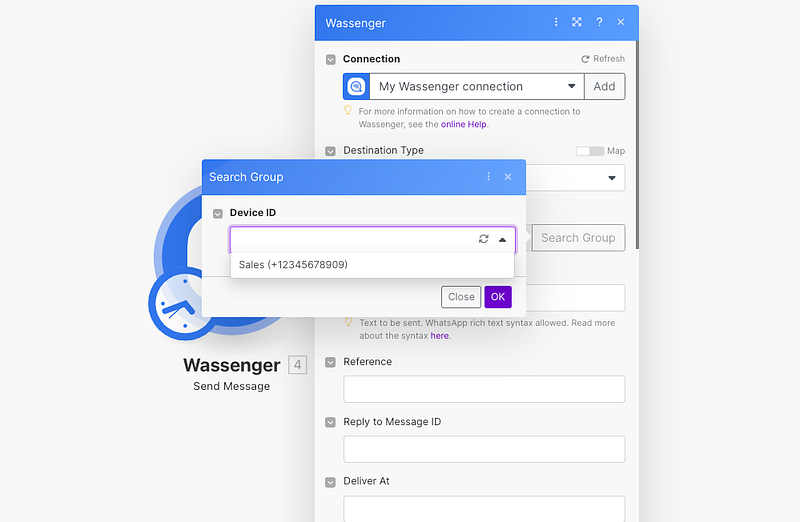 - 2. If more than one number is connected in Wassenger, select which number we want to use to send the reply message.