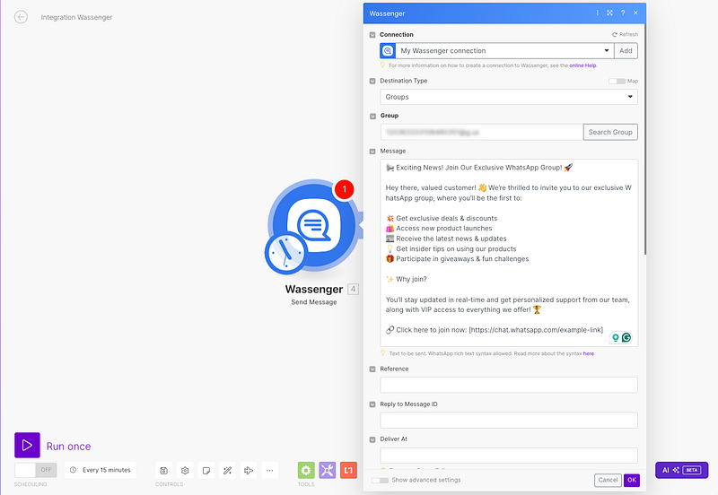 Learn how to send automated messages to WhatsApp Groups using Wassenger and Make (formerly Integromat), no programming knowledge is required!