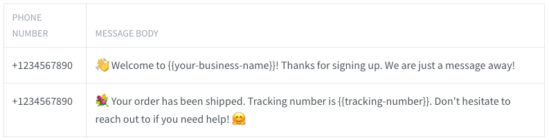 '👋 Welcome to {{your-business-name}}! Thanks for signing up.We are just a message away!' +