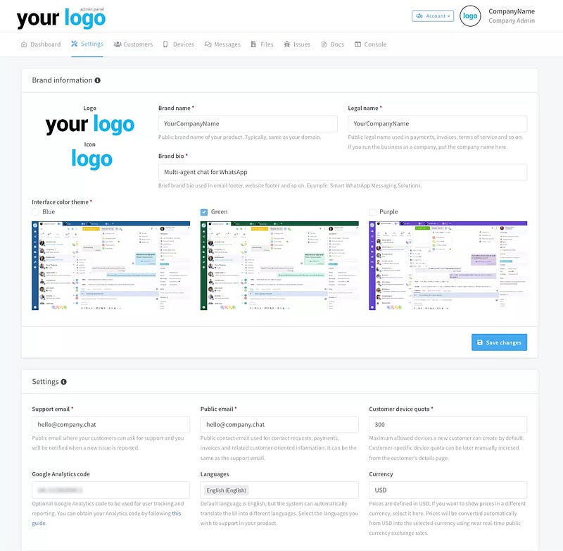 - Define types of messages that can be sent: choose if agents can send media, audio, location and contact cards.