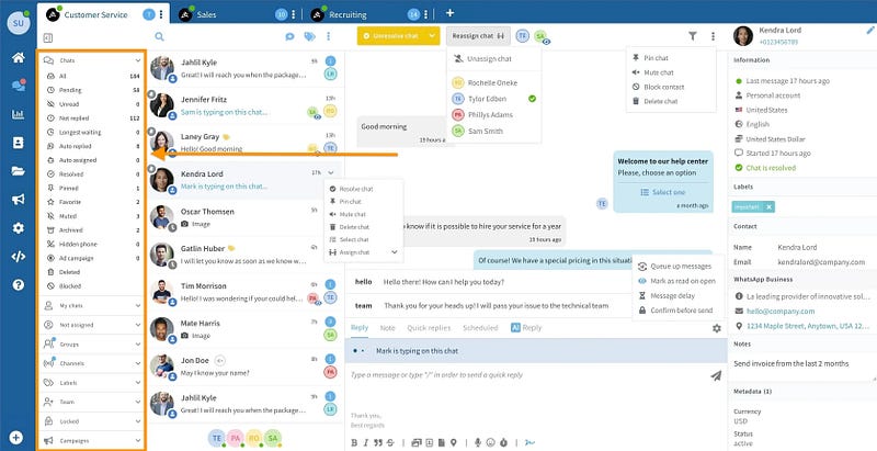 - Assign chats to specific agents: automatically or manually assign chats or groups to specific team members.