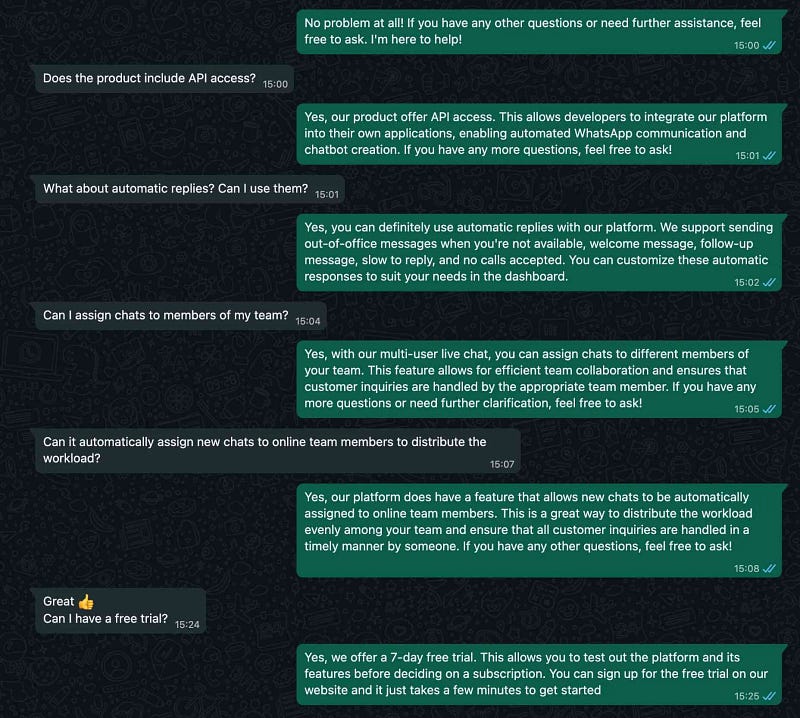 That’s it! You can now test the chatbot from another WhatsApp number