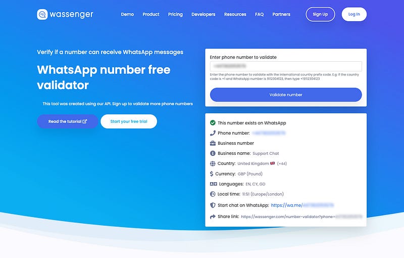 Please note this validation only validates of the given phone number format is valid or not, but it will not validate whether it’s linked or not to an existing WhatsApp account.